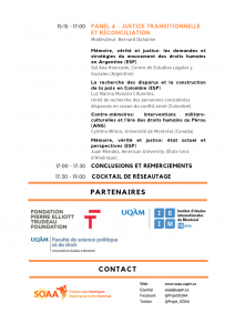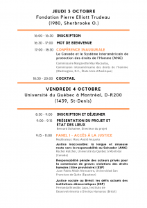 Découvrez le programme final du colloque international “S’ouvrir aux Amériques pour mieux protéger les droits humains et s’engager dans la réconciliation”. Également disponible au format pdf : Programme final 3-4 oct. (FR) (3)